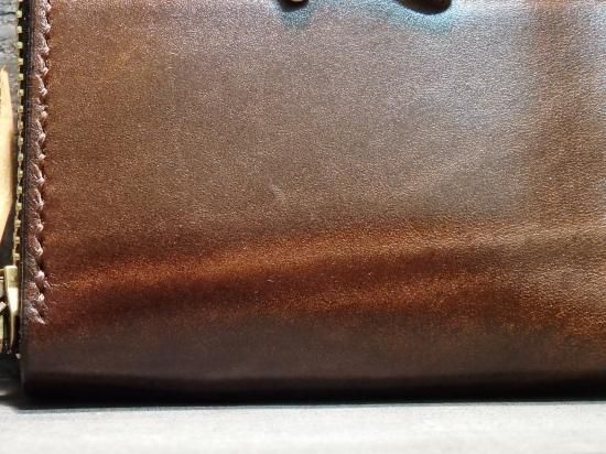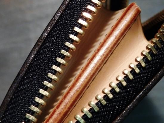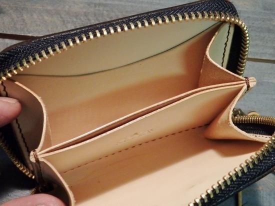 内側は、ナチュラルのサドルレザーを使用し、使い勝手も良く、素材全ての良さ、オーダーならではのラウンドジップコインケースに完成しました。