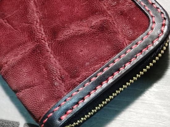 ゾウ革を使用したラウンドジップコインケースのオーダーを頂きました。