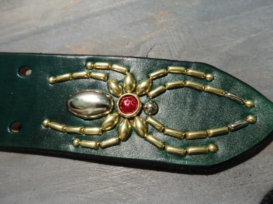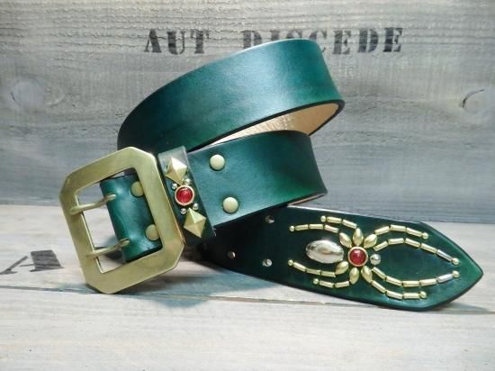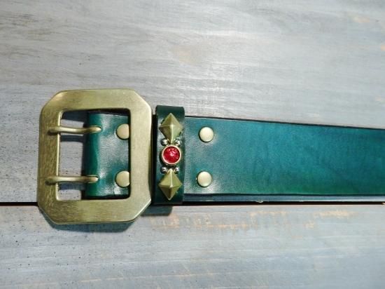 ■商品名:ダブルショルダーレザー/GREEN/スタッズ/プレーンベルト/オーダー品