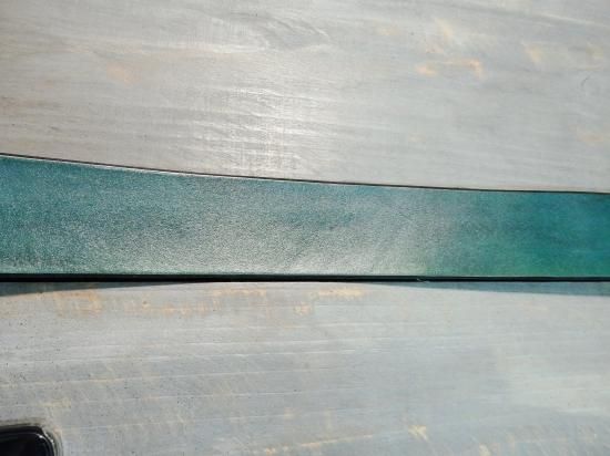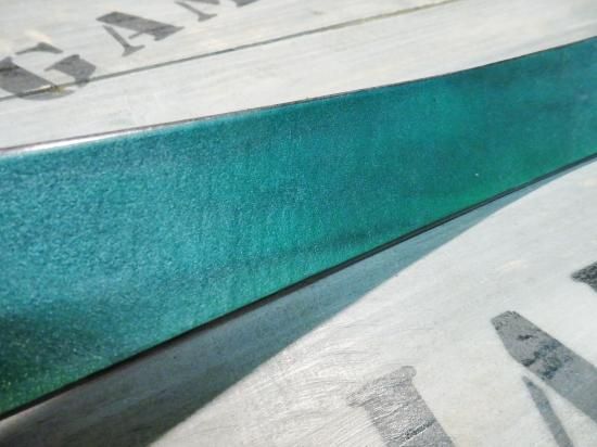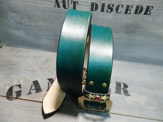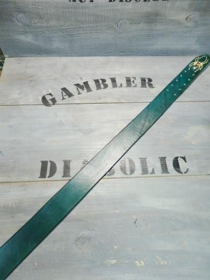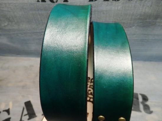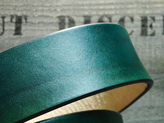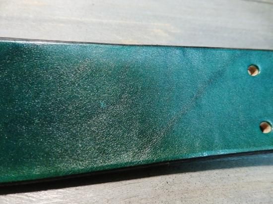 ダブルショルダーレザーを使用し、緑に手染めを施したプレーンベルトのオーダーを頂きました。