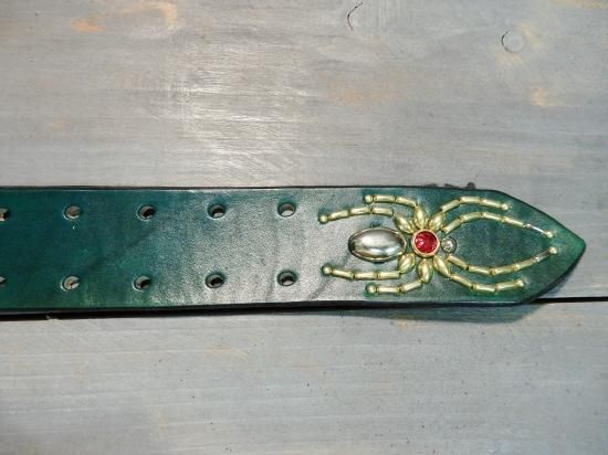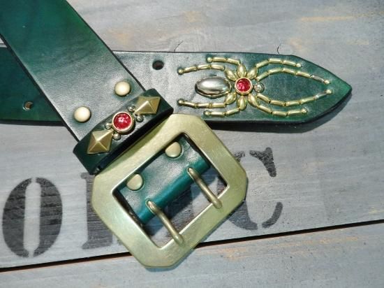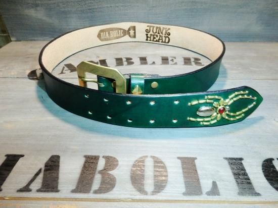 ダブルショルダーレザーベルト/GREEN/スパイダースタッズ