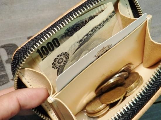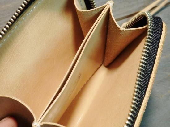 使い込む事で、生地、革が経年変化が出て来て自分だけの手放せないラウンドコインケースになって行きます。