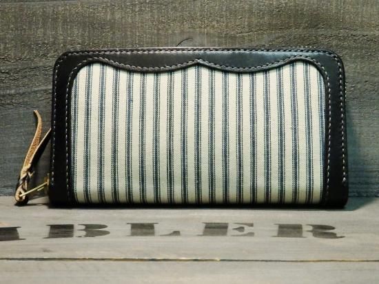 アンティークティッキング/サドルレザー/ラウンドジップウォレット