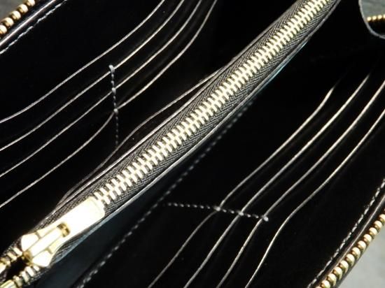 内側は、サドルレザーを使用し小銭x1、札入れx2、カード入れx12と収納スペースを多く設け、カードやお札、レシート等を選別して収納出来、1930年代のジッパーをリアルに復刻した拘りのZIPで、アンティーク、革、ジップ全ての素材の良さが現れたオーダーならではの組み合わせで上品なラウンドジップウォレットに完成しました。