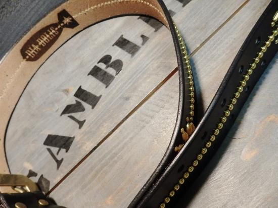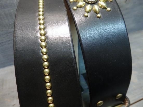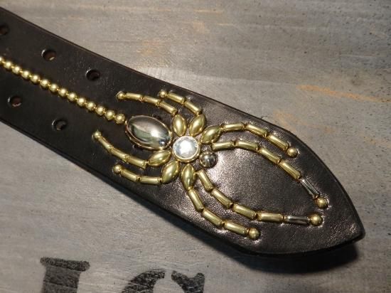 サドルレザーを使用しましたスパイダースタッズベルトのオーダーを頂きました。