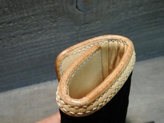 内側はシンプルに、サドルレザーを使用し、使い込む事で、カバ革、サドルレザーの異なる変化を