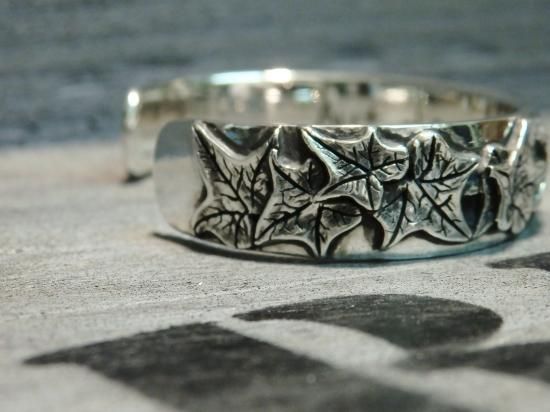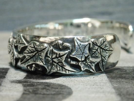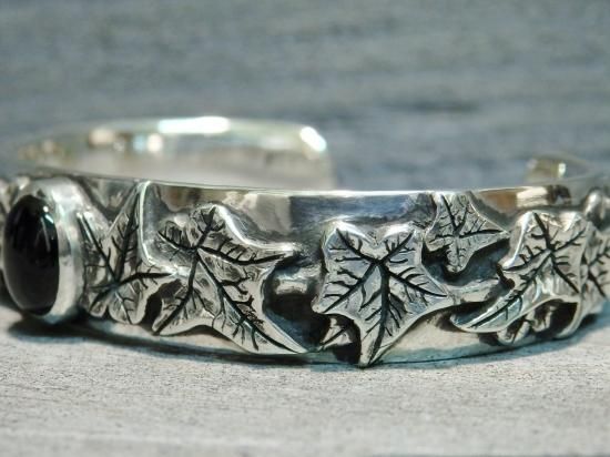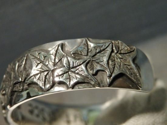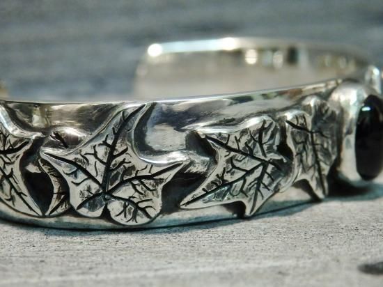 アイビー(へデラ)をモチーフにオニキスをセットしたシルバーバングルのオーダーを頂きました。