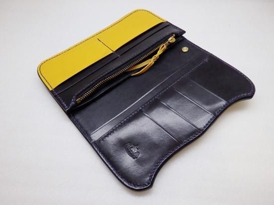 内側は、豊富な収納で革素材、シワ模様の良さを最大限に生かす為、スタッズ等無しのプレーンウォレットで、綺麗で高級なウォレットに完成しました。