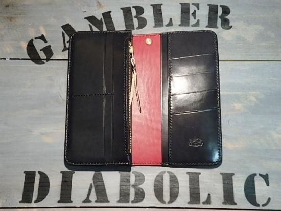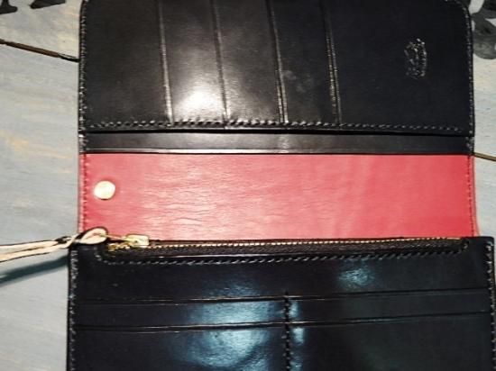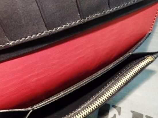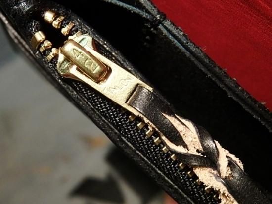 丁寧に打ち込まれたスタンプの彫りが深く存在感があり、堅牢な革に相反して、使い込む程深い味わいが増し、お客様のご希望で赤のサドルレザーを裏貼りしTALON ZIPを使用。オーダーならではの組み合わで、使い込む程に変わる変化を楽しみながら使用出来るウォレットに完成しました。