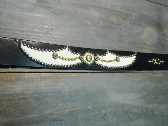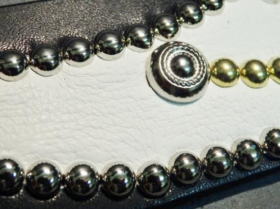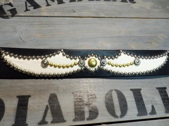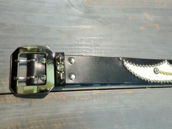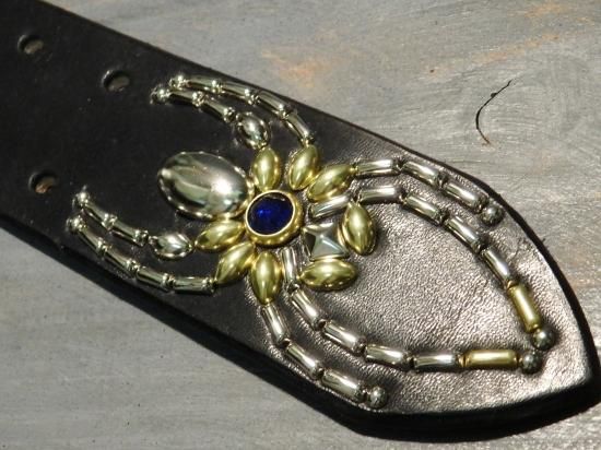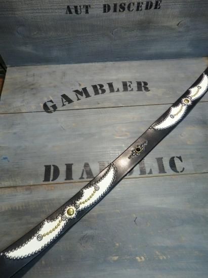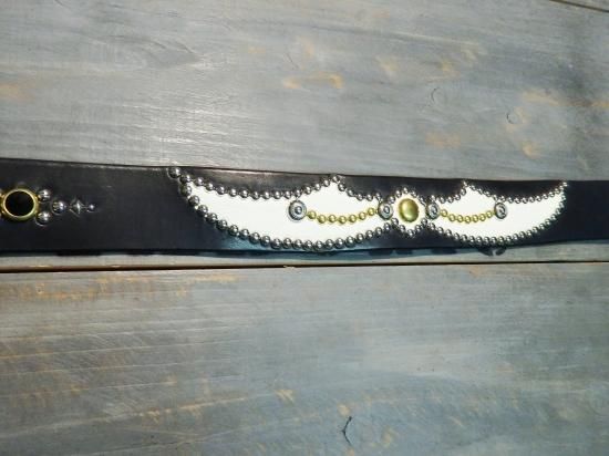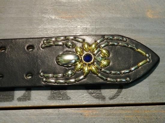 オンラインショップにあるスタッズベルト/サドルレザー/ウィング/スパイダー(45mm)/BR-B45-015とスタッズ、インレイ等は同じで、サイズが短いとの事でお客様のサイズに合わせ製作し完成しました。