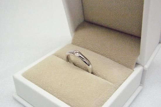 奥様にプレゼントという事で、プラチナを使用し、リングの外側にダイヤモンドをセット。