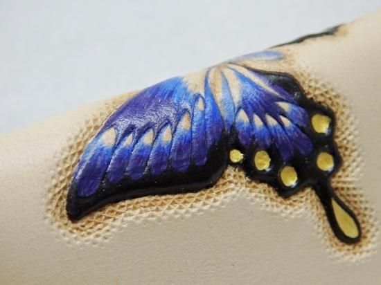 「美」「愛」「優雅」「喜び」「再生」「死者の魂」「限りある儚さ」を象徴する意味がある蝶をカービングし、