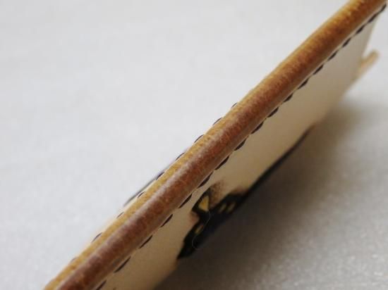その後、染色を施しナチュラルな革が使用して行く程に変わる経年変化が楽しみなライターケースに完成しました。