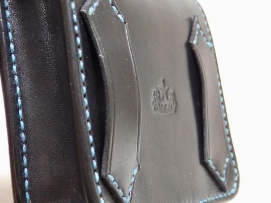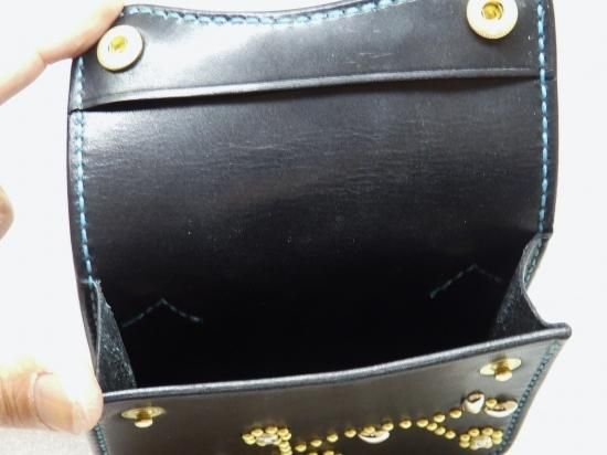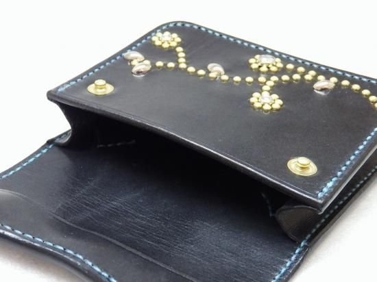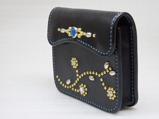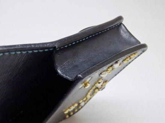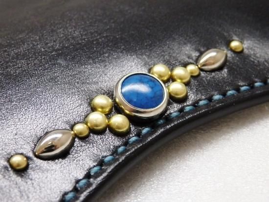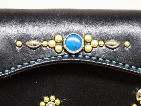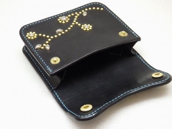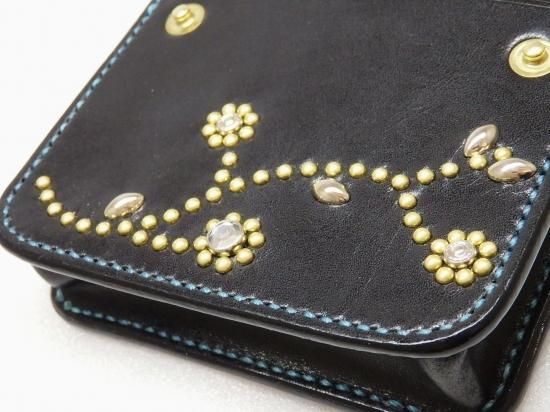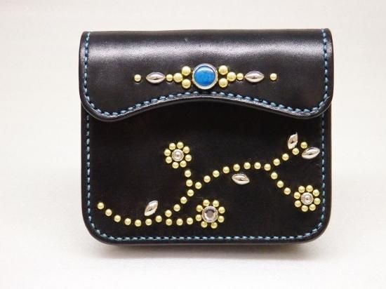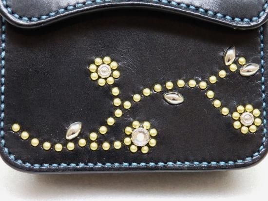 サドルレザーを使用し、フラワースタッズ、蓋の部分にも打ち、中央にはご要望で