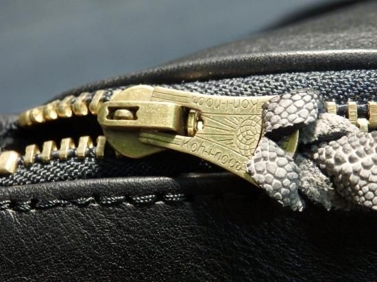 収納も豊富で使用し易く、ゾウ革を使用した事で高級感があるボディバッグに完成しました。