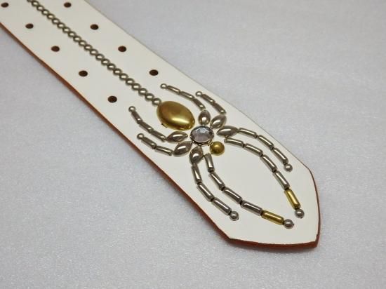 サドルレザーを使用したスパイダースタッズベルトのオーダーを頂きました。