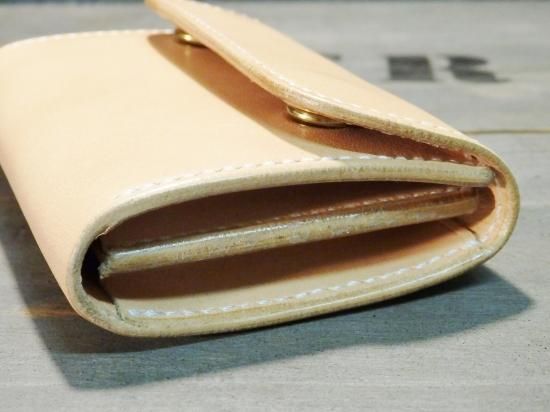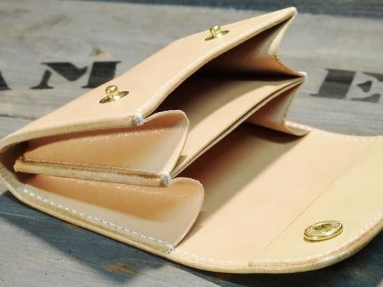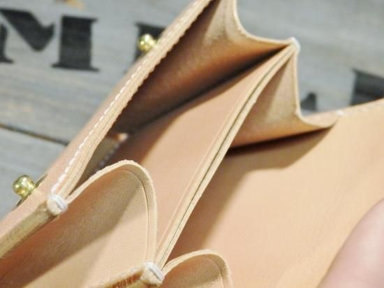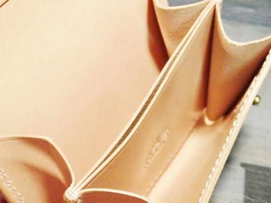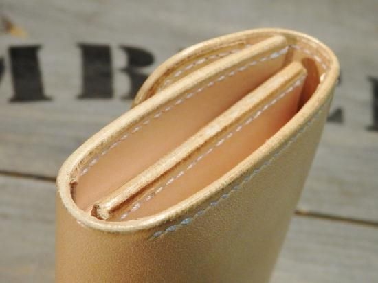 ナチュラルなサドルレザーを使用し、内側の収納は、ラウンドジップコインケースの造りで製作。