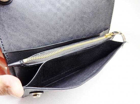 丁寧に打ち込まれたスタンプの彫りが深く存在感があり、堅牢な革に相反して、使い込む程深い味わいが増し、スタッズ等無しで、刻印のみですが、使い込む程に変わる変化を楽しみながら使用出来るウォレットに完成しました。