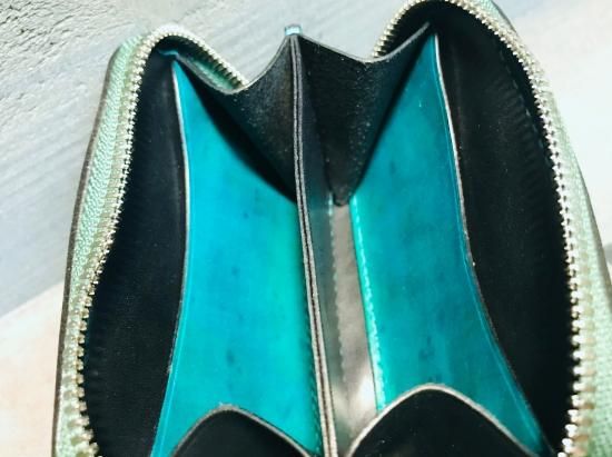 素材、オーダーならではの組み合わせの全ての良さが現れたラウンドジップコインケースに完成しました。