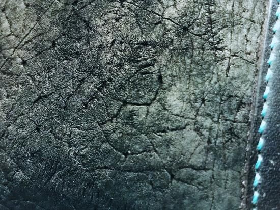模様が深く入っている部位とそうでない部位があり、それが濃淡のある革です。