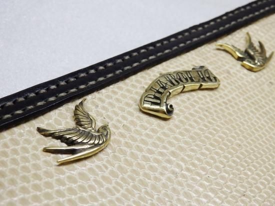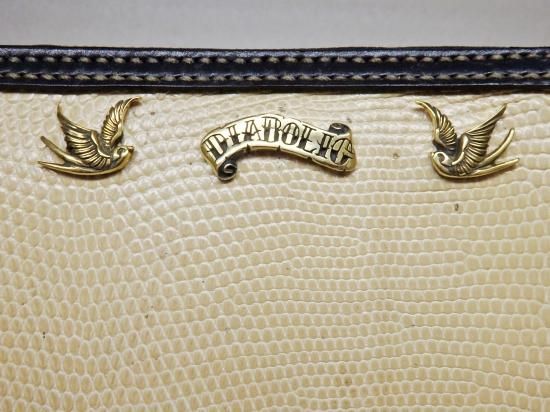 細かくて粒の揃った独特の体鱗の形状で妖しさと格好良さとが同居した不思議な魅力がある革を使用し、リボンとツバメのカスタムパーツをセット。