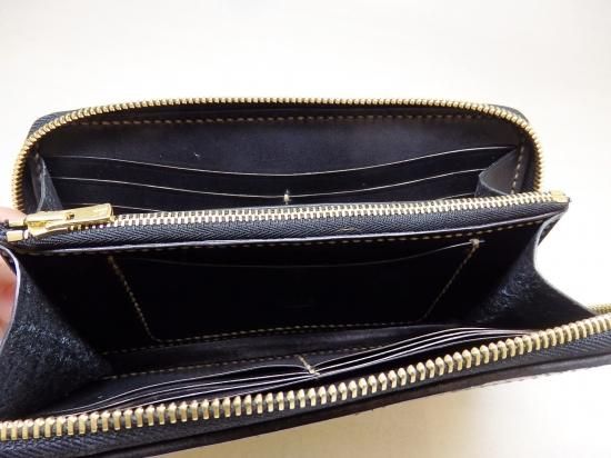小銭x1、札入れx2、カード入れx12、ライセンスカードx2と収納スペースを多く設け、カードやお札、レシート等を選別して収納出来、使用し易さ、使い勝手も良く、素材全ての良さが現れ、オーダーならではの組み合わせのラウンドウォレットに完成しました。