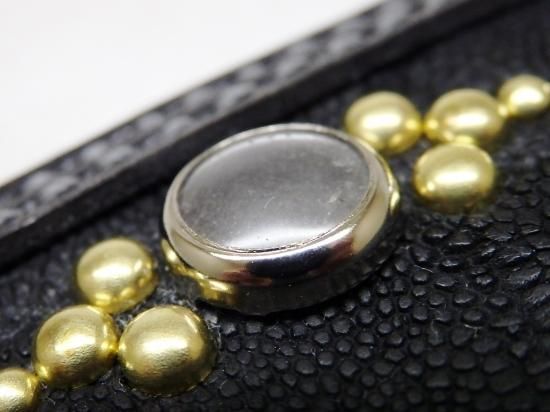 ゾウ革は厚く丈夫で特有の大きなヒダ、シワがあり、細かい粒状に隆起が特徴です。耐久性に優れ、使うほどに独特の味わいが深まる素材で、さらにご要望で水晶をセット。