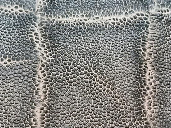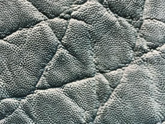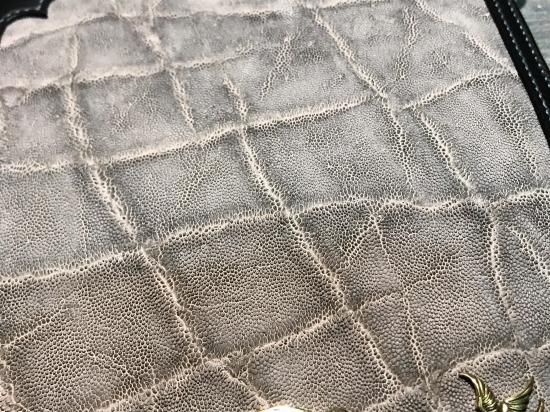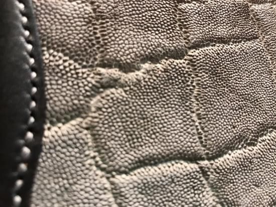 ゾウ革は厚く丈夫で特有の大きなヒダ、シワがあり、細かい粒状に隆起が特徴です。耐久性に優れ、使うほどに独特の味わいが深まる素材です。