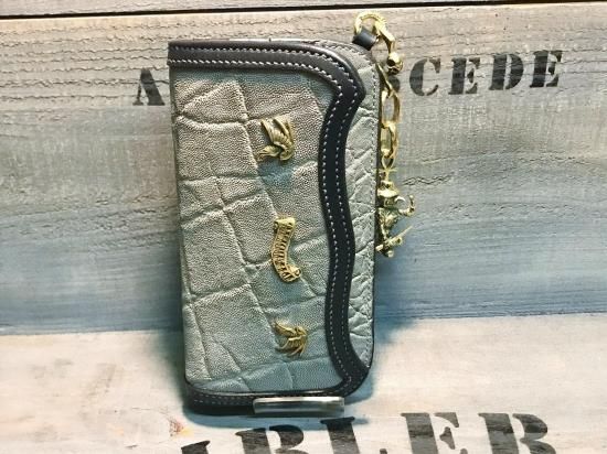 ■商品名:エレファントレザー(ゾウ革)/リボン・ツバメBRASS/ウォレット/オーダー品