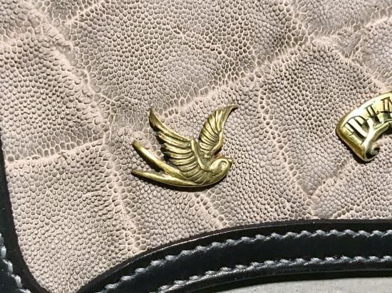 ・カスタムパーツのリボンは真ん中、両脇にスワロー、素材は真鍮