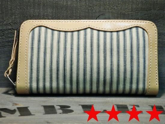 ■商品名:ラウンドジップウォレット/アンティークティッキング生地/サドルレザー