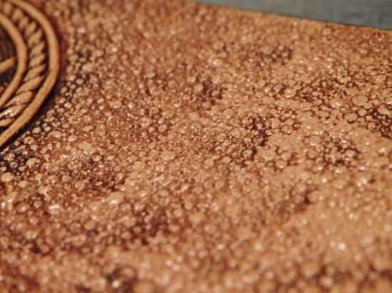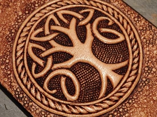 全体をマットスタンプ(つや消し)で、ランダムで規則性のない凹凸を付け、中央のカービングを引き立たせ、アンティーク加工を施し、カービングは「生命の樹」。旧約聖書の創世記にエデンの園の中央に植えられた木がモチーフ。