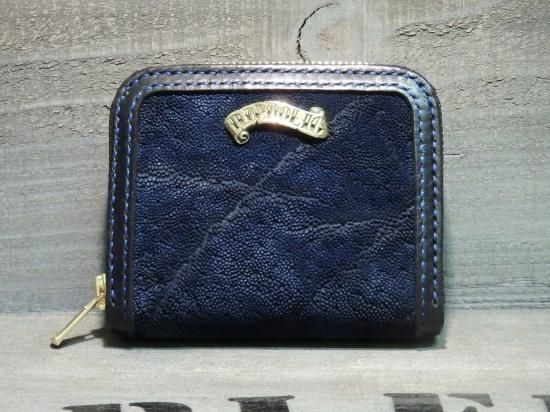 ■商品名:エレファントレザー/ゾウ革・NAVY/リボン・BRASS/ラウンドジップコインケース/オーダー品