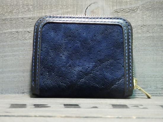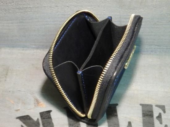エレファントレザー/ゾウ革・NAVY/リボン・BRASS/ラウンドジップコインケース