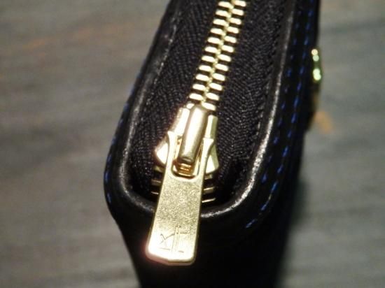 ゾウ革は厚く丈夫で特有の大きなヒダ、シワがあり、細かい粒状に隆起が特徴で、カードと小銭を入れ、エクセラジップがより高級感を出し、開閉は本当にスムーズで使用し易さ、使い勝手も良く、カスタムパーツの真鍮のリボンをセット。