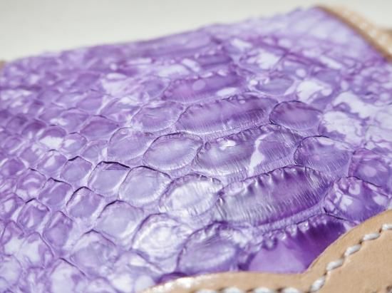 他の皮革には見られない美しい鱗と、ワイルド感があり、独特のマーブルの色合いが目を引きます。