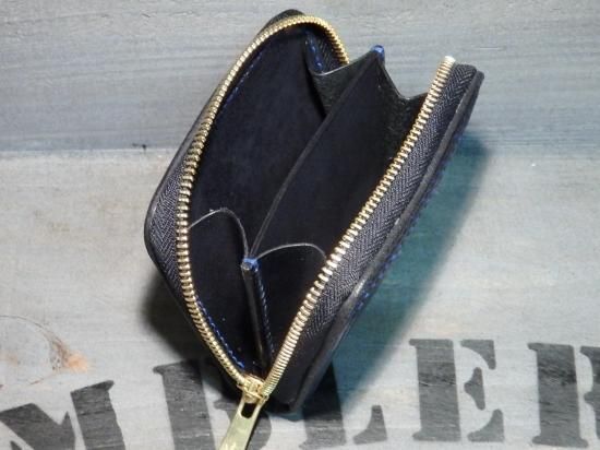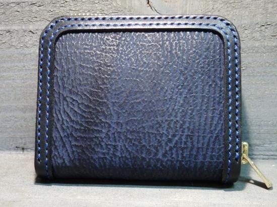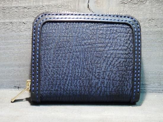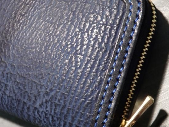 NAVYのサメ革の色合いが高級感を出し、開閉は本当にスムーズで使用し易さ、使い勝手も良く、素材全ての良さが現れたラウンドジップコインケースに完成しました。