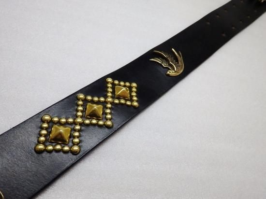 UKサドルレザー/DIABOLICロゴ/ツバメ/スタッズベルト