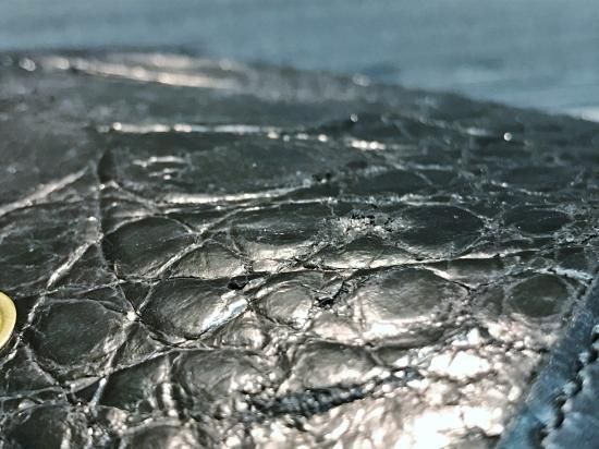 ワシントン条約の対象の海革で、もう入荷がない非常に貴重な素材で、それぞれのウロコが不規則な形で独特の模様が特徴。