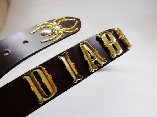 ■商品名:UKサドルレザー/DIABOLICロゴ/スパイダー/スタッズベルト/オーダー品