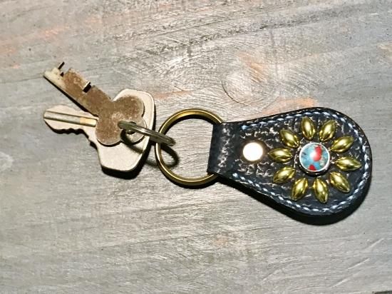 スタッズもくすみ、味わいの出るキーホルダーです。