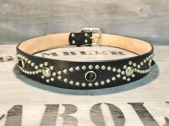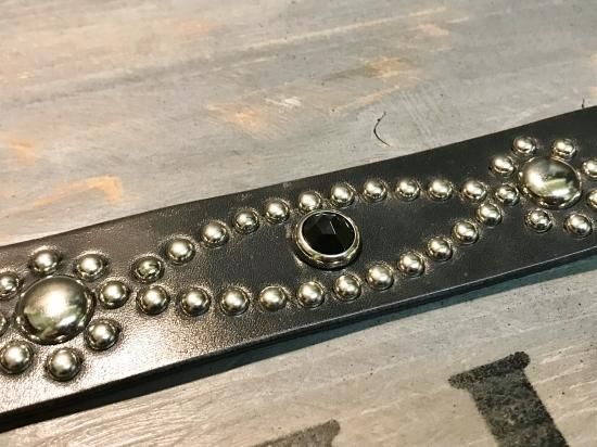 BR-B40-010をベースに、お客様のサイズに合わせ、スタッズはニッケル、ラインストーンは全て黒で統一。