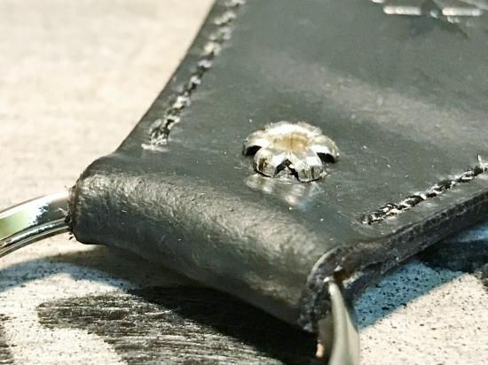 お客様より、革はコードバン、スタッズはニッケル、ステッチは黒、玄関用電子キーのICチップを入れて欲しい、と細かく分かり易いご注文で製作。