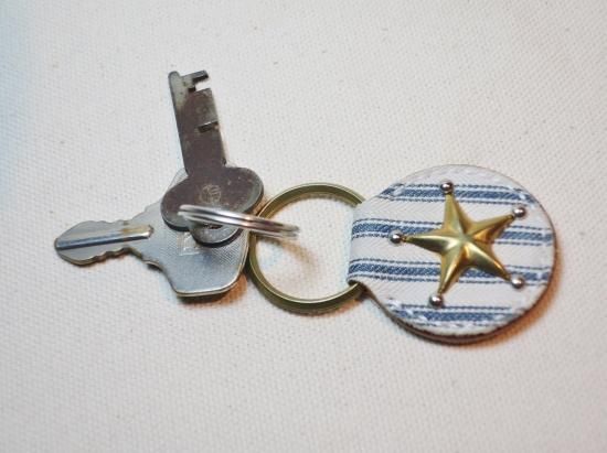 スタッズキーホルダー/アンティークティッキング生地
