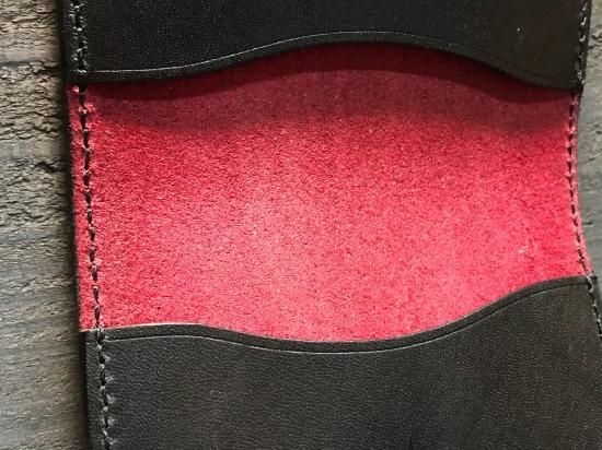 丁寧に打ち込まれたスタンプの彫りが深く存在感があり、堅牢な革に相反して、使い込む程深い味わいが増し、お客様のご希望で内側は赤の手染めを施し、オーダーならではの組み合わで、使い込む程に変わる変化を楽しみながら使用出来るライターケースに完成しました。