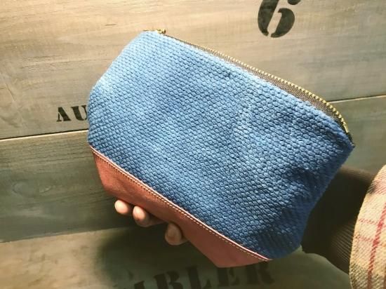 ■商品名:ポーチ/ショルダーレザー/古い生地