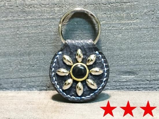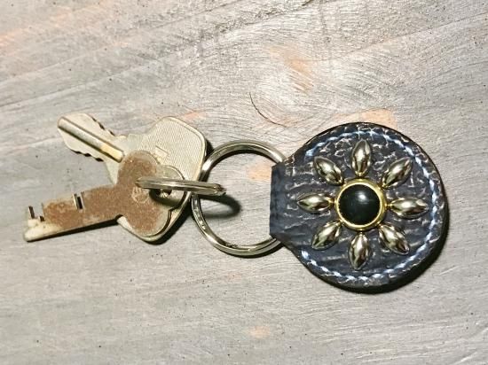 スタッズもくすみ、味わいの出るキーホルダーです。