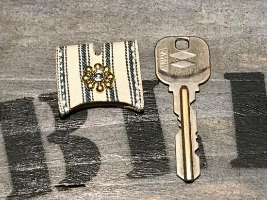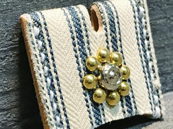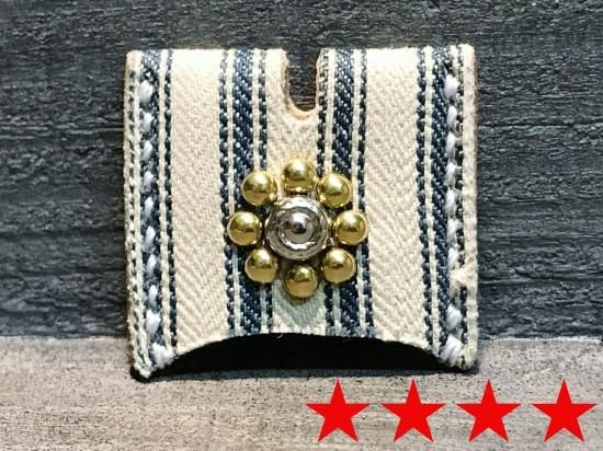 1900's〜1920'sアンティークティッキング生地を使用したスタッズキーカバー。