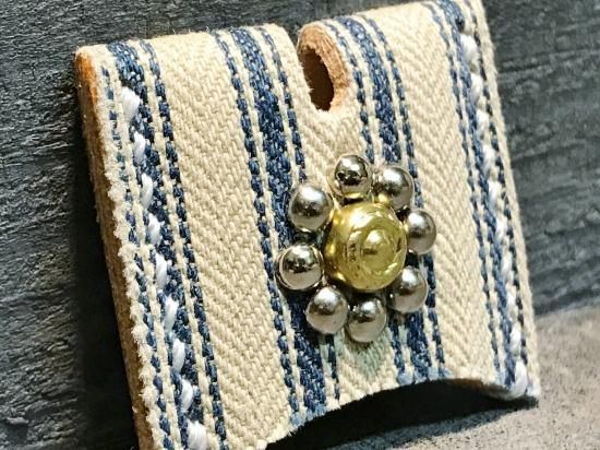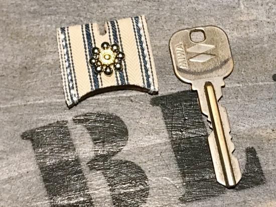 1900's〜1920'sアンティークティッキング生地を使用したスタッズキーカバー。