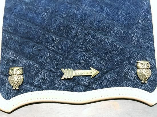 その大変貴重な革を最大限に贅沢に使用し、カスタムパーツのアローとフクロウをセット。